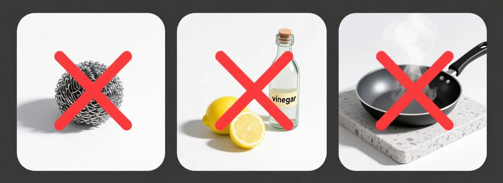 - Avoid placing hot pots or pans directly on the surface. Always use trivets or stands.