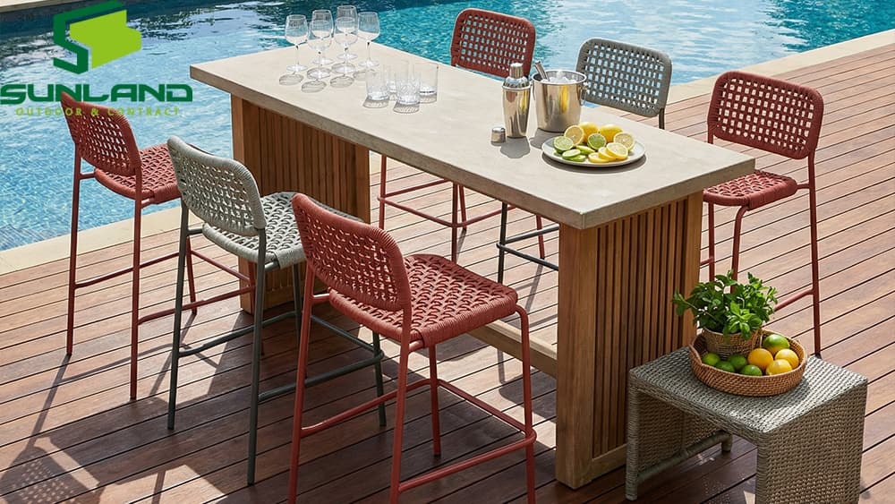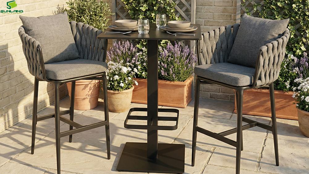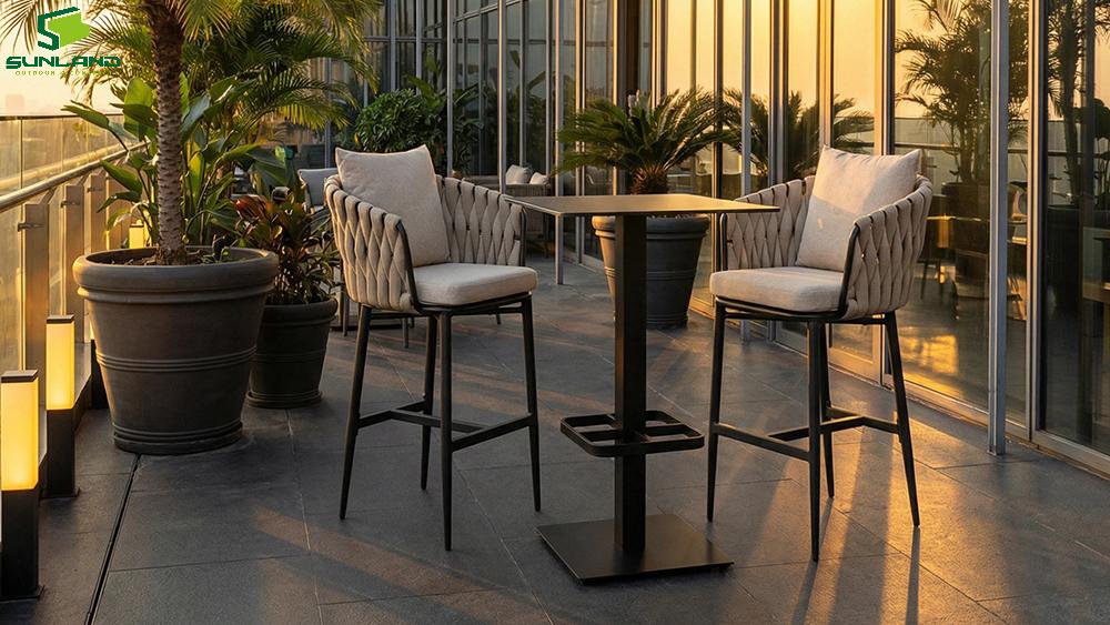 Sunland Sturdy K/D Aluminum Frame Rubber Weaving Cecilia High Bar Stool for Outdoor Patio Terrace Hotel Bar Resort Contract Furniture SL-B213-H75-WE