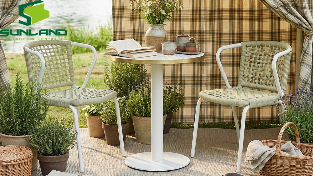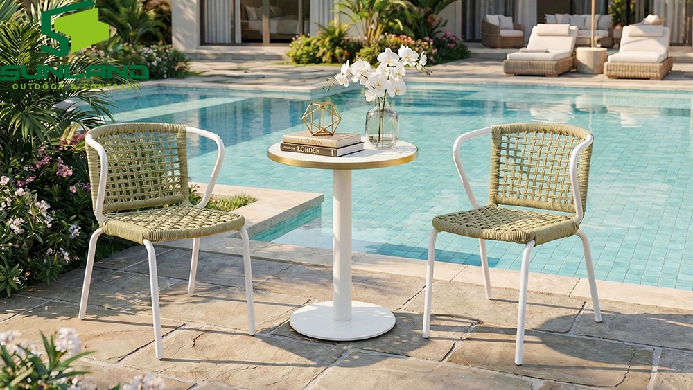 Sunland Modern Aluminum Frame Rope Weaving Dining Chair for Outdoor Hotel Cafe Restaurant Garden Furniture SL-C312-WE (Copy)