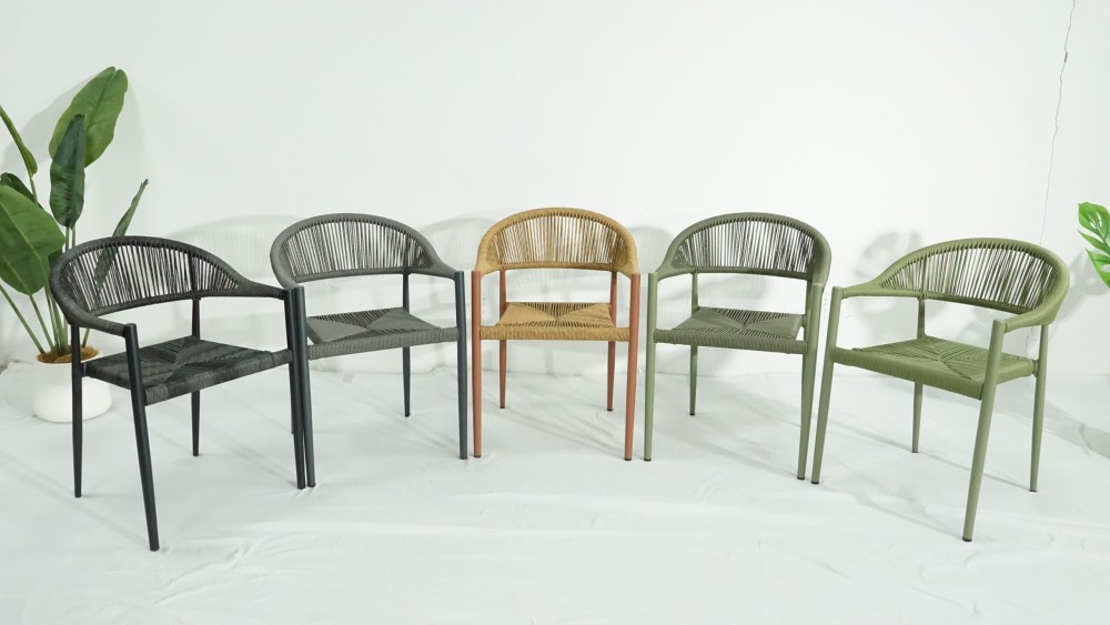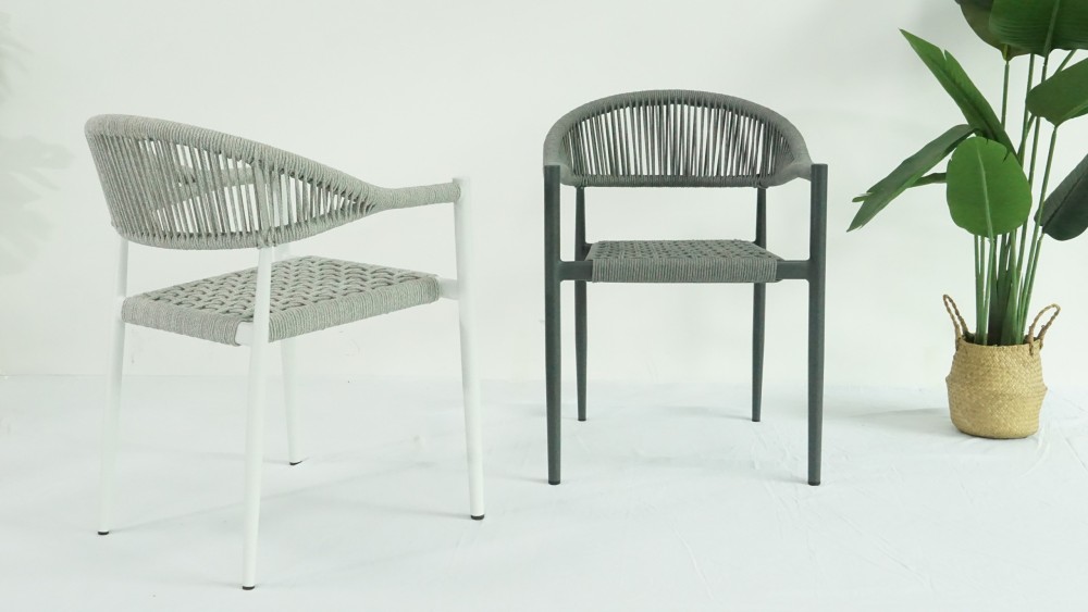 Sunland 2025 New Design Stackable Rope Weaving Dana Dining Chair for Outoor Cafe Restaurant Patio Garden Furniture SL-C205B-WE