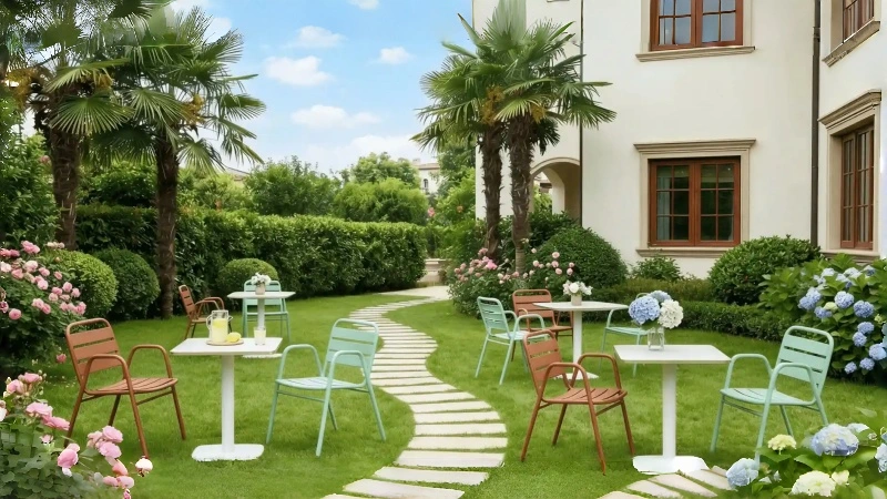 From garden cafes to restaurant terraces, the Tina chair blends seamlessly into various settings. Its clean look and range of color options—including light green, brown-red, and orange—allow it to complement any décor style.