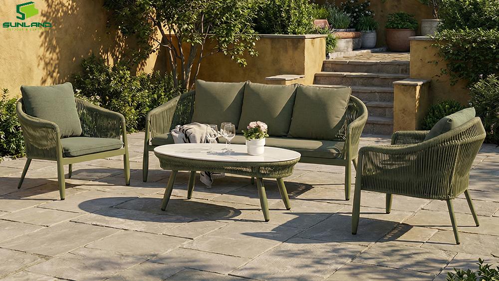 (1).Aluminium frame rope weaving stack-able outdoor cafe restaurant chairs supply by Chinese aluminium furniture manufacturers