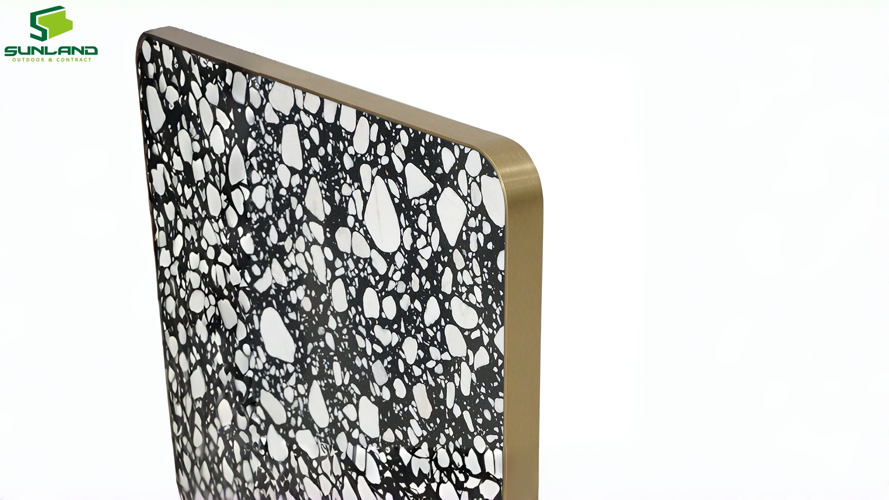 Sunland Elegant Sturdy Terrazzo Dining Table Top Board With Optional Aluminum Edge For Restaurant Bistro Pub Cafeteria Furniture TZAT-R60-T25