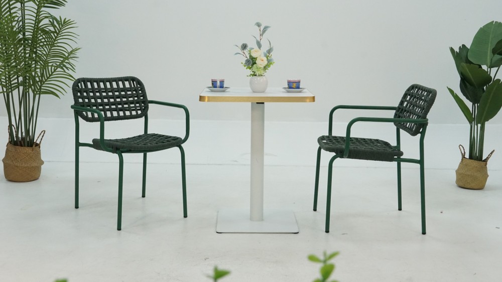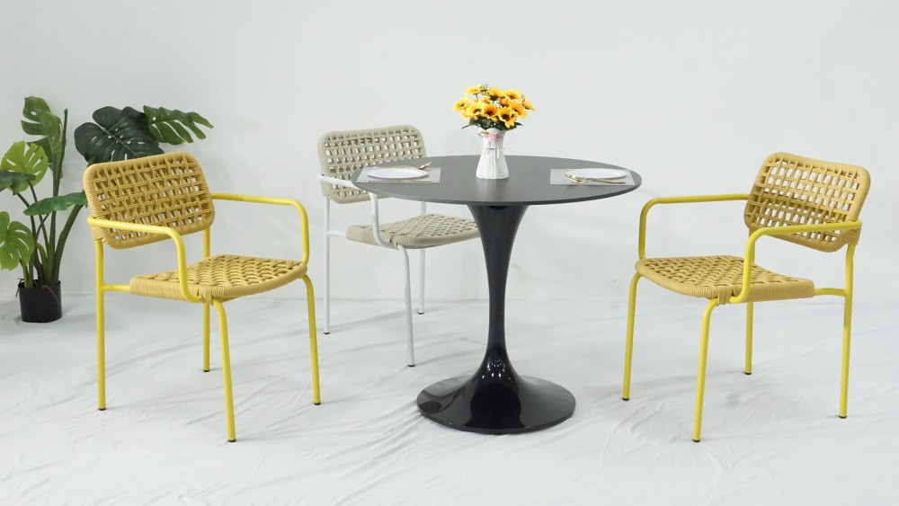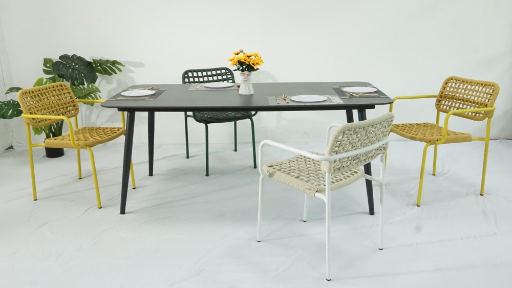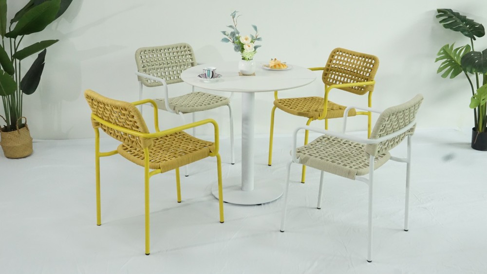 (1). Sunland new design stackable rope weaving dining chair for balcony terrace garden furniture supply from Chinese outdoor furniture factory