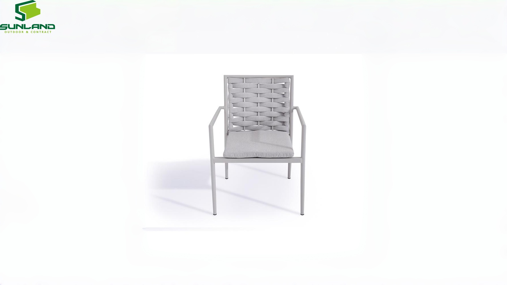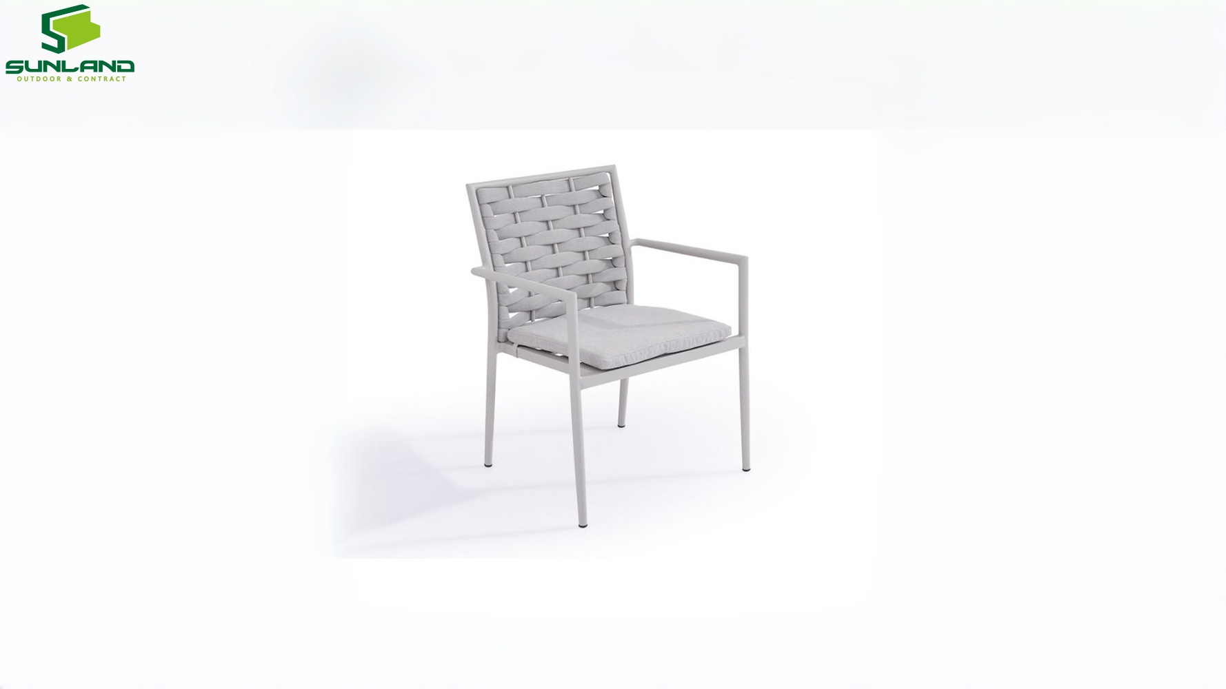 (1). Sunland comfortable dining arm chair—Aluminium frame stackable outdoor cafe & restaurant chairs, supplied by Chinese aluminium furniture manufacturers