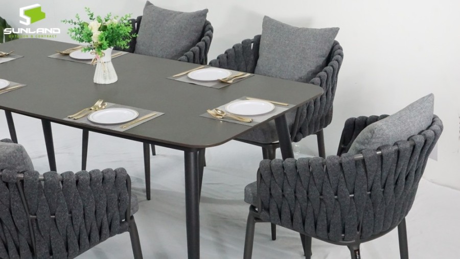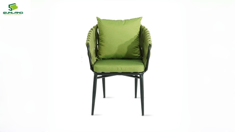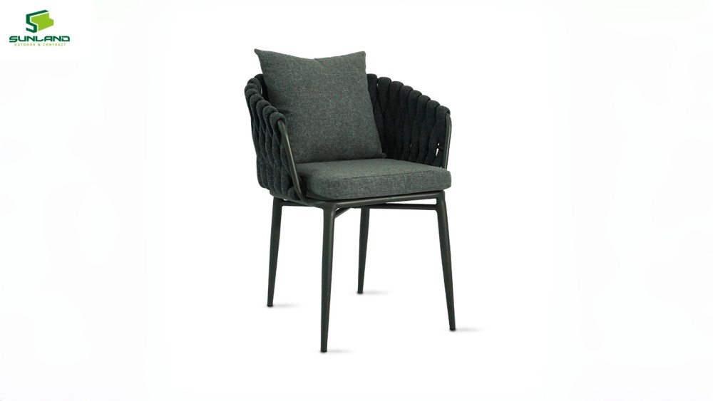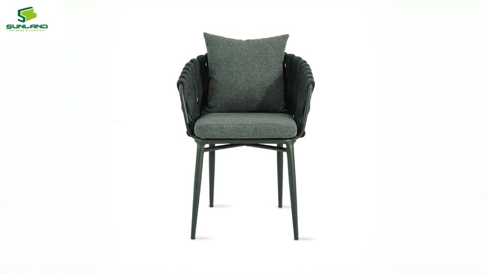 SUNLAND Comfortable Cecilia Dining Chair Aluminum Frame with Olefin Rubber Rope Weaving & 5cm Thick Cushions Suitable for Outdoor & Contract Horeca Café SL-C213-WE