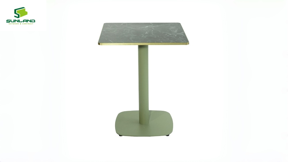 (3). 60x60cm sintered stone table top available in multiple colors with golden flat aluminum edge reliable for hotel terraces, resort, and all-weather garden cafés supplied globally