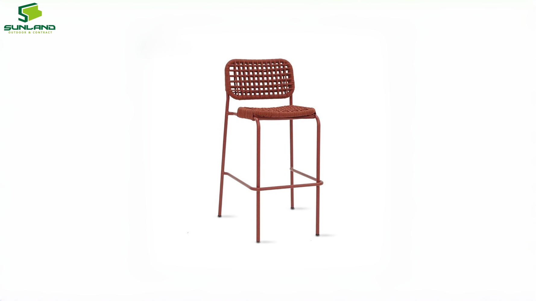 (1). Sunland Elegant rope-weaving high bar stool with footrest for balcony, terrace and garden outdoor furniture, supplied direct from China’s professional outdoor furniture factory
