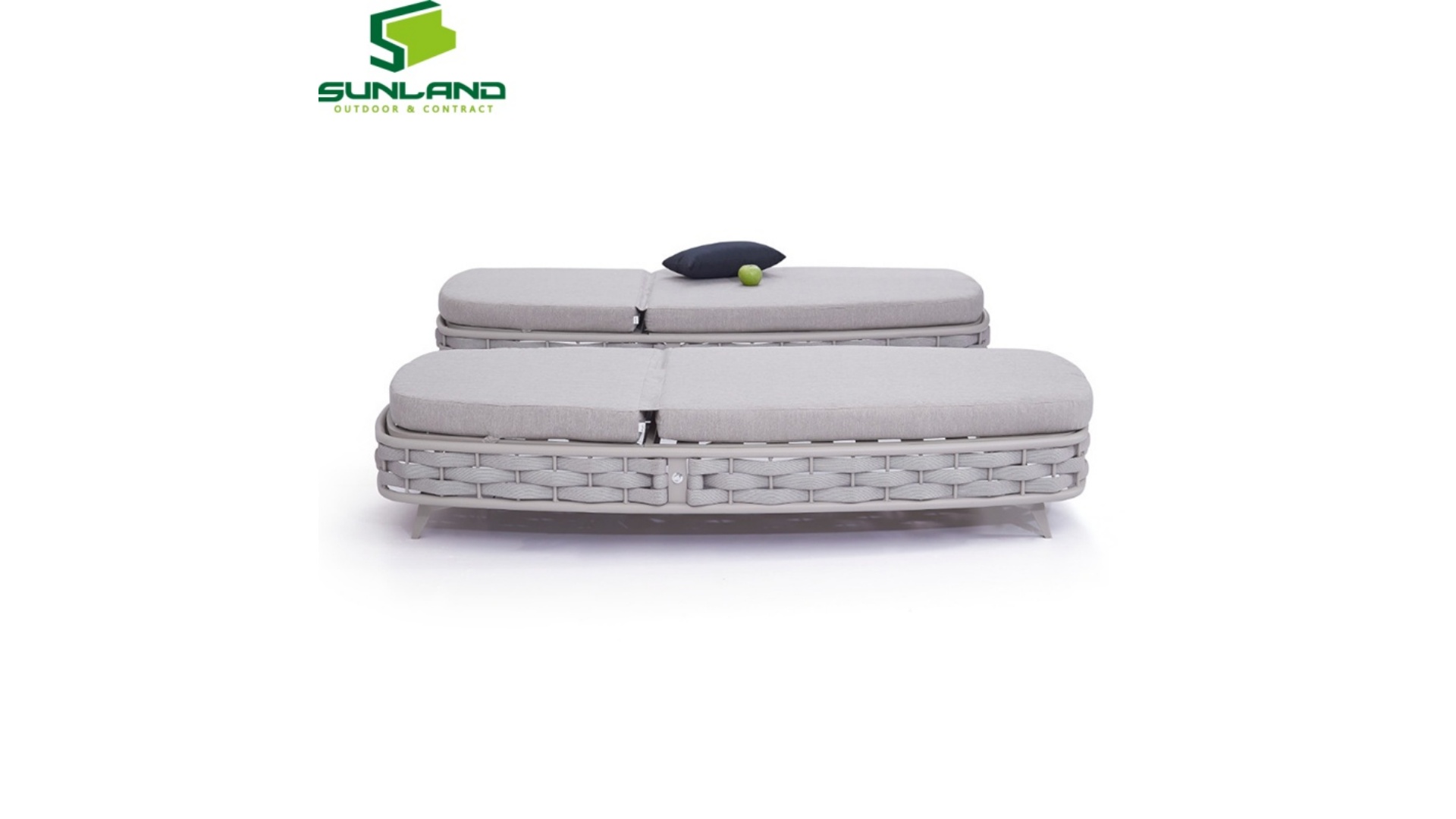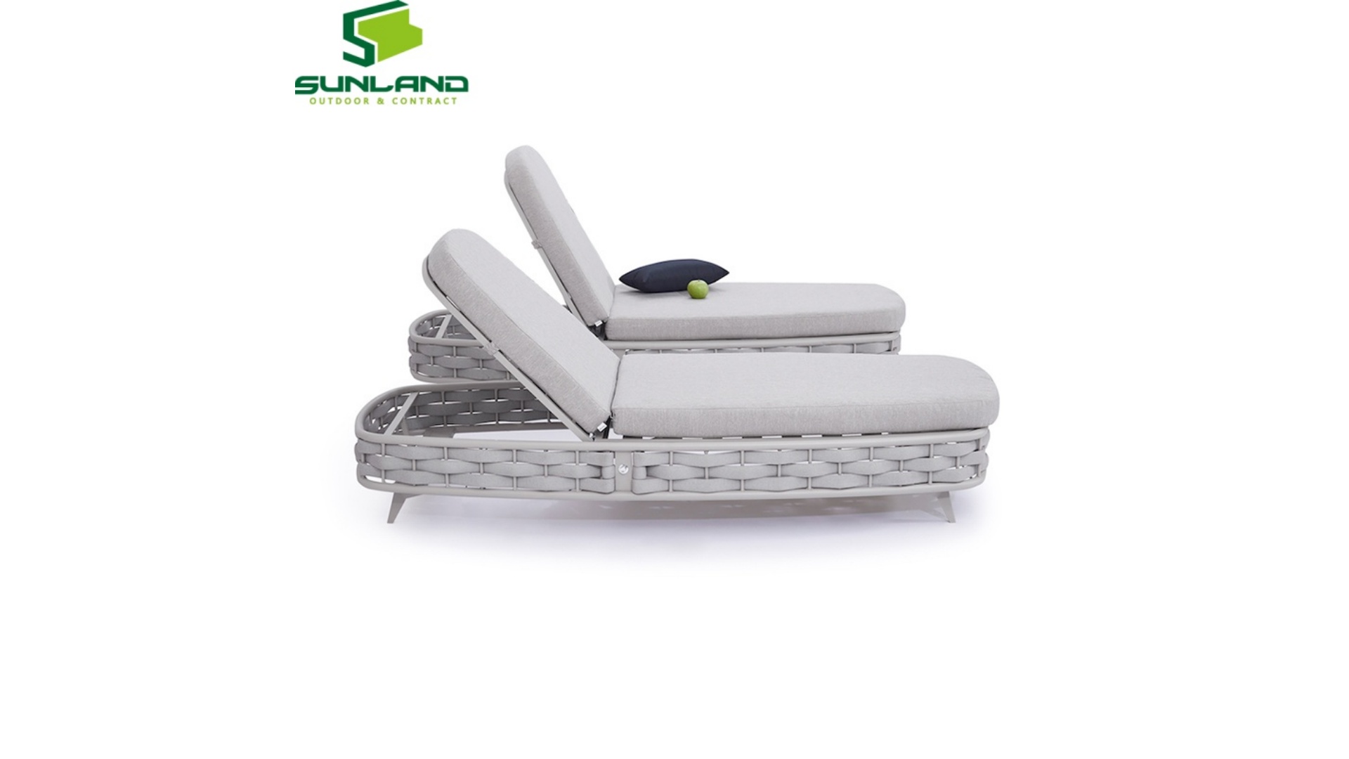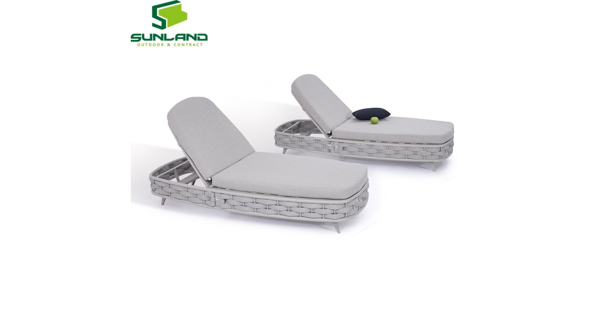 Sunland Helen Hydraulically Adjustable Aluminum Structure Ruber Rope Weaving Resort Style Sun Lounge For Swimming Pool Beach Club Backyard Outdoor Furniture SL-L210-WE