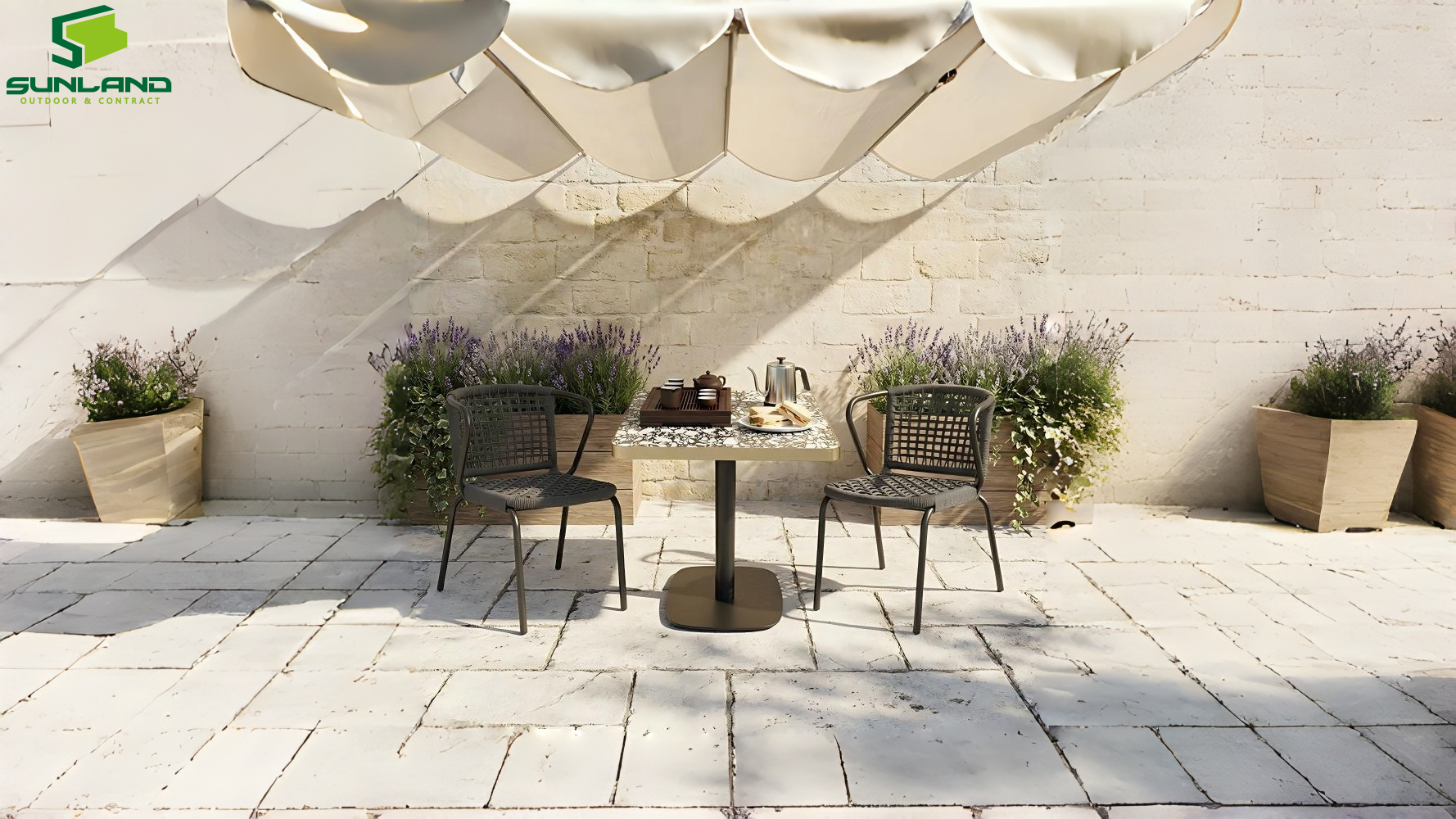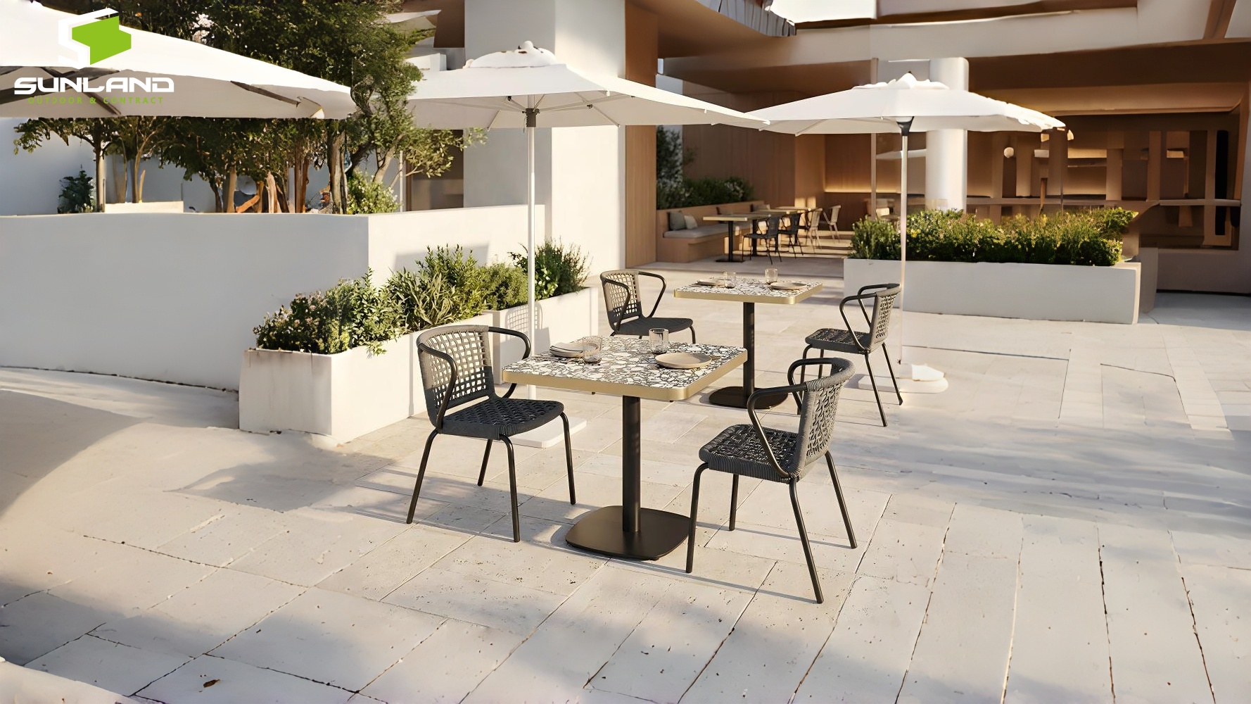 (1). Sunland scratch resistant terrazzo tabletop furniture supply from Chinese outdoor furniture factory