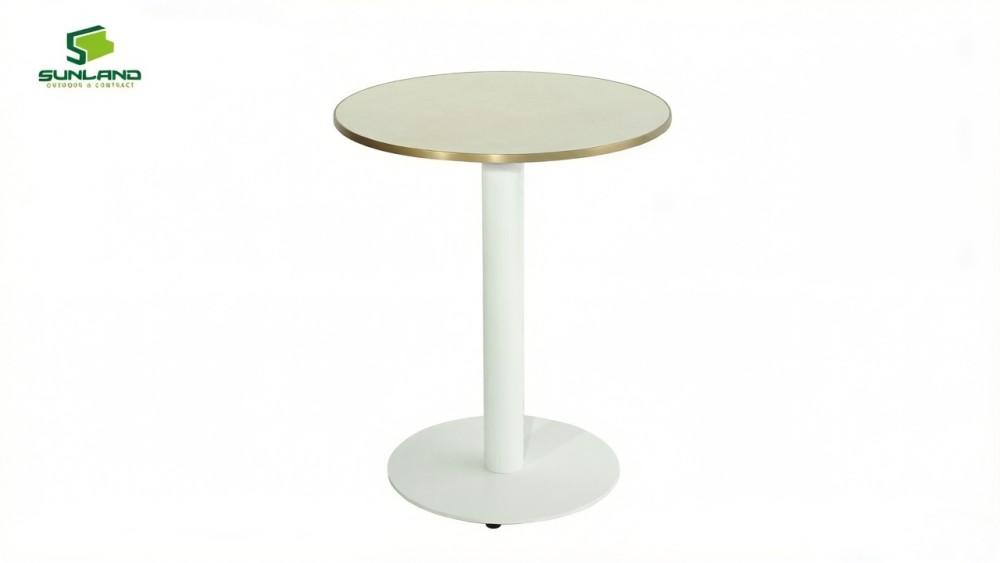 (3). Sintered stone table top, featuring a 60cm round design with a golden flat aluminum edge for hotel patio tables, resort pool bars, and garden café furniture supplied to global projects
